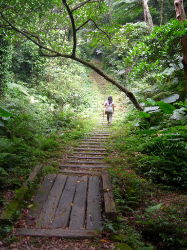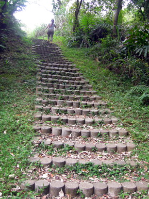 枕木舖設的山階,非常美麗,