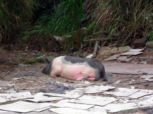 看到這隻胖嘟嘟的小豬躺著打盹兒,