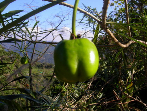 翌年三月遇到了黃花夾竹桃的綠果。