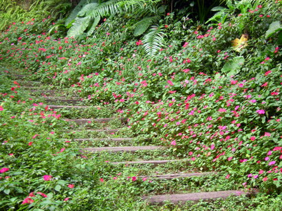 野花舖滿山階,一路有鳥語蟲鳴,