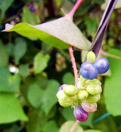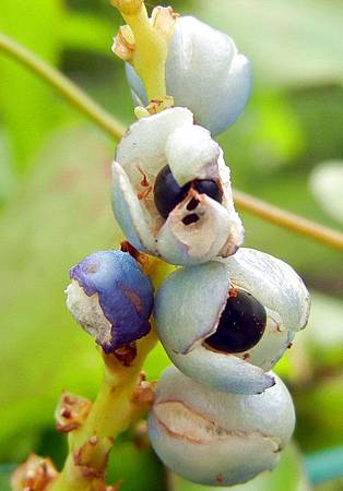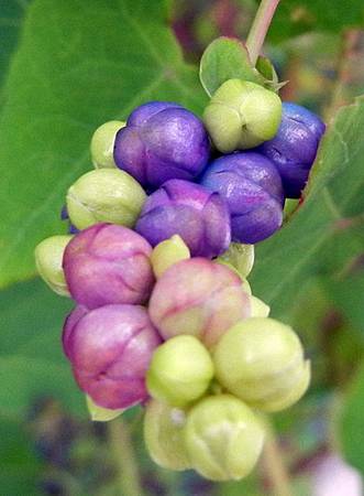 果實從花的白綠染上粉粉的紅和粉粉的藍,