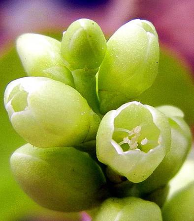 小綠花綻開時半敞,