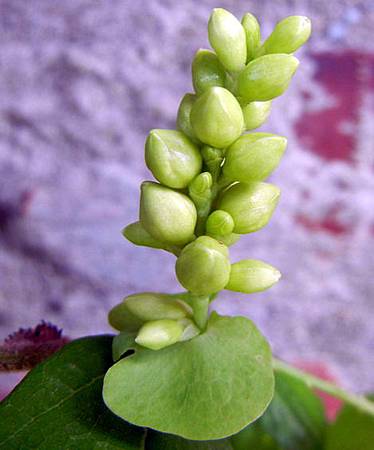 穗狀花序上密生白綠花苞,